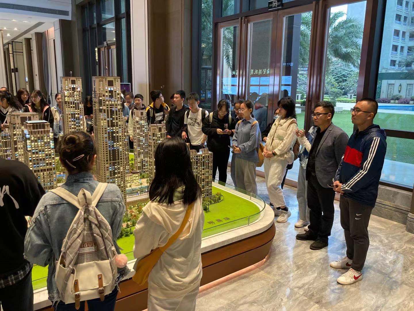 课程中学生们有序参观了项目沙盘、超甲级写字楼样板间、300平米豪华住宅样板间等,并聆听了精彩的项目汇报。李经理从地段、规划、配套、结构及材料、装修和园林规划等六个方面全面介绍了富力首府项目的设计理念和细节把控方法。汇报结束后学生们与李经理就超高层建筑设计、建筑设计师所应具备的素质、建筑师的职业发展和规划等问题展开了交流探讨,现场互动气氛热烈!