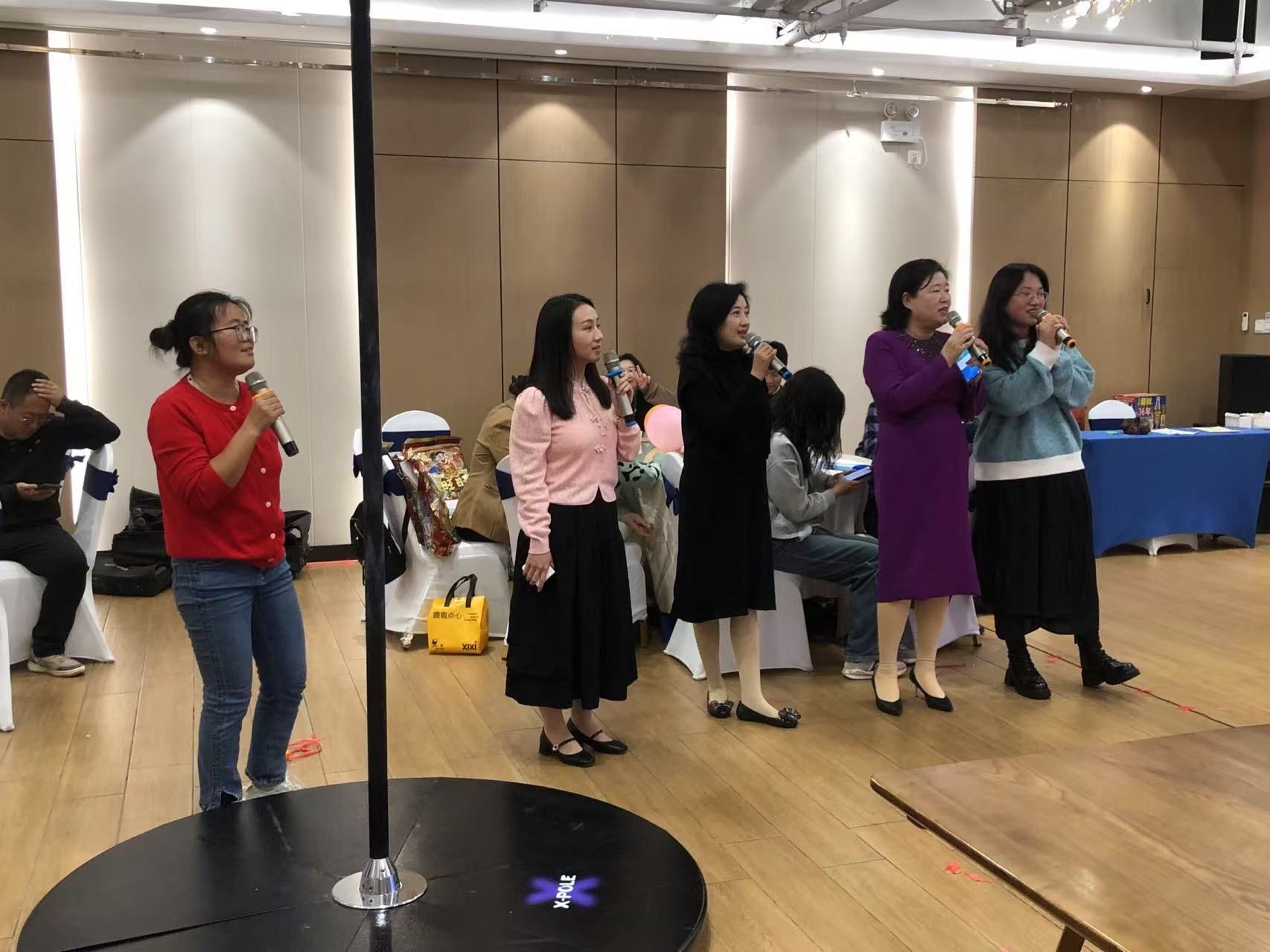 最后,李艳书记、张华立老师、刘雪老师、姜柳老师和段书舒老师共同合唱了经典歌曲《甜蜜蜜》,将现场气氛推向了最高潮,全场洋溢着温馨和谐的氛围