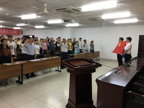 为庆祝中国共产党成立97周年,进一步深刻学习领会习近平新时代中国特色社会主义思想,增强党员党性观念,定理想信念,7月3日下午,william威廉亚洲官方党委在研发楼510会议室举办主题党日活动暨新党员入党宣誓仪式。学院全体师生党员参与此次活动。活动由学院党委罗邻球副书记主持。