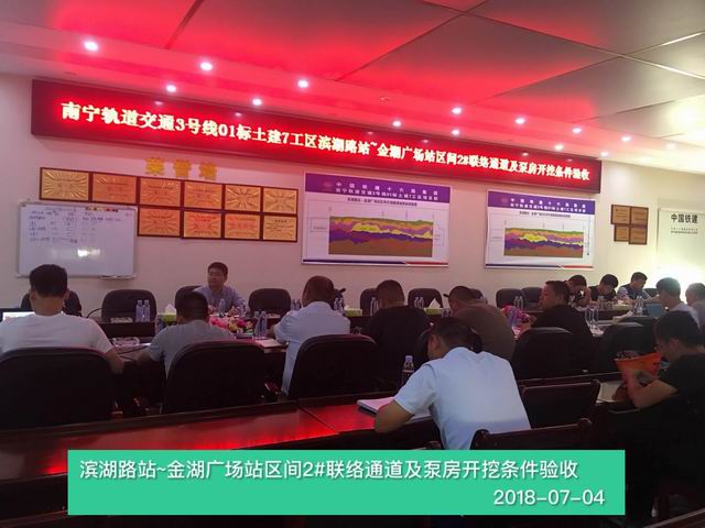 2018年7月4日下午,中铁十六局组织对南宁市轨道交通3号线一期工程滨湖路站—金湖广场站区间2#联络通道及泵房冻结法加固开挖条件进行评审,我院教师胡俊副教授应邀参加评审并担任此次开挖条件验收评审专家组组长。评审期间,胡俊老师与参会单位南宁轨道交通集团有限责任公司、中铁十六局集团、兖矿新陆建设发展有限公司等相关负责人员充分交流,达成了产学研合作意向。同时,此次参会提升了我校在国内隧道及地下工程领域的知名度。
