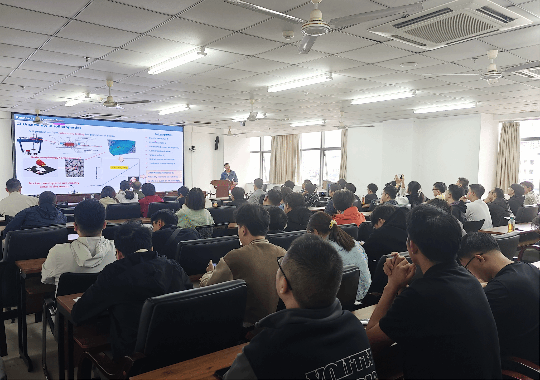 2025年12月25日,香港理工大学尹振宇教授应海南大学william威廉亚洲官方邀请,在研发楼510会议室为师生们带来了一场题为《土体特性的数据高效建模与不确定性量化》的学术报告。