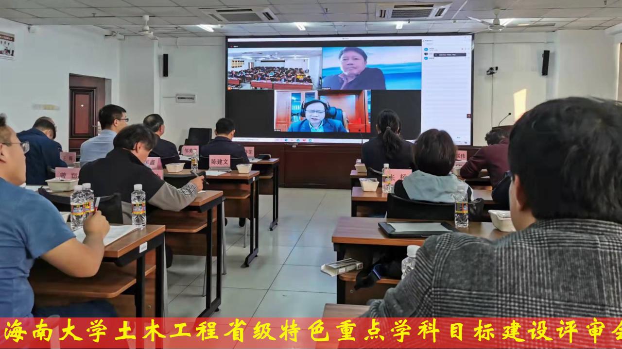 2022年1月12日下午,海南大学土木工程省级特色重点学科目标建设评审会在海口市海南大学海甸校区研发楼510会议室举行。以中国工程院院士欧进萍教授为组长,日本工程院外籍院士董勤喜教授、日本工程院外籍院士陈飞勇教授、海南省科技厅刘作凯副厅长、海南省住房和城乡建设厅刘联伟副厅长、海南大学科技处邹勇华处长、海南大学发展规划处赵治乐副处长为成员的专家组出席会议。会议由土木建筑工程学院院长周智教授主持,会议采取线上和线下结合的方式进行。海南大学研究生处处长廖双泉,学院副院长张友良、邱宙廷、田元福,党委副书记孙晓媛,教授韩建刚、曹宝珠、杨东全、刘婉秋、王辉、任兴月等老师参加了会议。