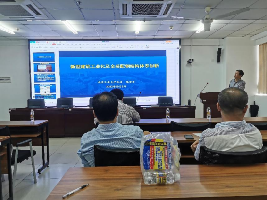 10月9日下午15:00-18:00,北京工业大学张爱林教授应周智院长的邀请来我院做题为《新型建筑工业化及全装配钢结构体系创新》的学术报告,由于新冠肺炎疫情管控的原因,在研发楼510室通过线上线下相结合的方式进行。学术报告会由周智院长主持,他介绍了张爱林教授相关科研成果和研究动向等相关情况。我院教师、研究生近70人通过现场和腾讯会议聆听了报告会。