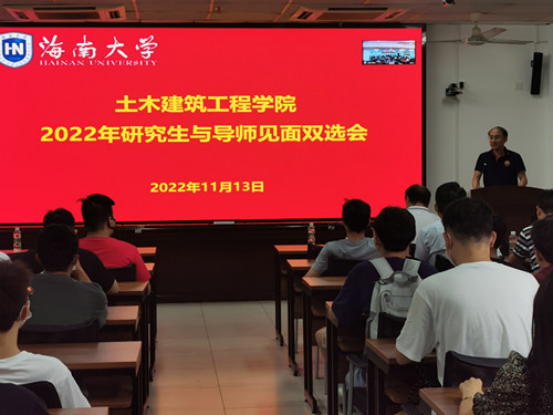 张友良副院长首先对2022级研究生新生的到来表示热烈地欢迎,介绍了召开这次会议的背景,对研究生与导师双选的程序和办法进行传达。随后学院导师、科研团队负责人或团队成员代表介绍各自的学历背景、研究方向、团队结构、已取得的科研项目和成果、以及在带研究生期间经费保障等。