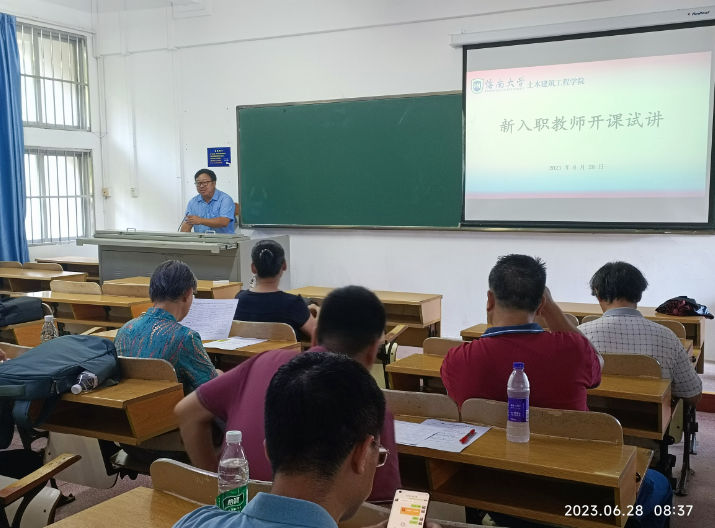 2023年6月28日上午,土木工程学院在2号教学楼101教室和102教室进行了新入职教师开课试讲工作。试讲工作由薛春霞副院长主持,周智院长针对我院教学水平提高、新入职教师教学注意事项等做了指示,田元福副院长、海工系主任任年鑫、建筑系主任蒋伊琳及课程组责任人和学院督导参加了试讲评审工作,王珍珍等10位新入职教师进行了开课试讲。