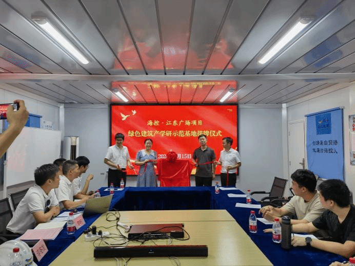 在活动的最后,海控置业发起了创建“海控·江东广场项目绿色建筑产学研示范基地”的倡议,随后,江东管理局、海南大学、海控置业、施工单位领导共同为示范基地揭牌,标志着产学研合作迈出了坚实的一步。