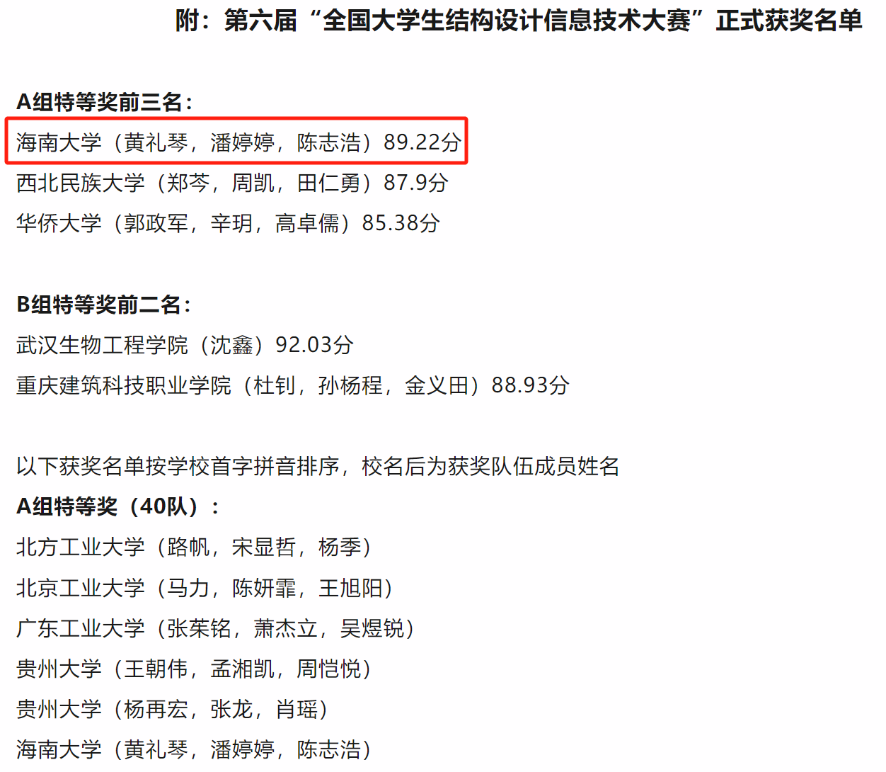 海南大学参赛团队获奖名单