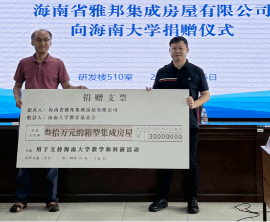 海南雅邦集成房屋有限公司与海南大学签订捐赠协议