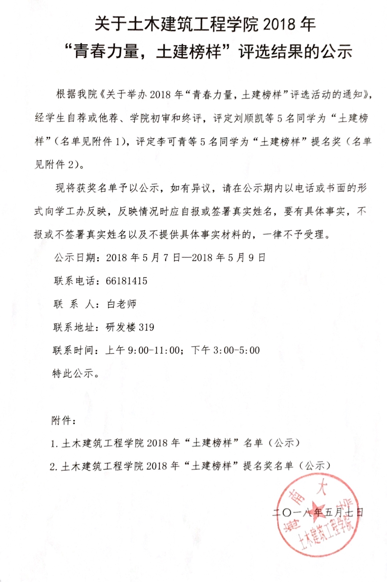 关于william威廉亚洲官方2018年“青春力量,土建榜样”评选结果的公示