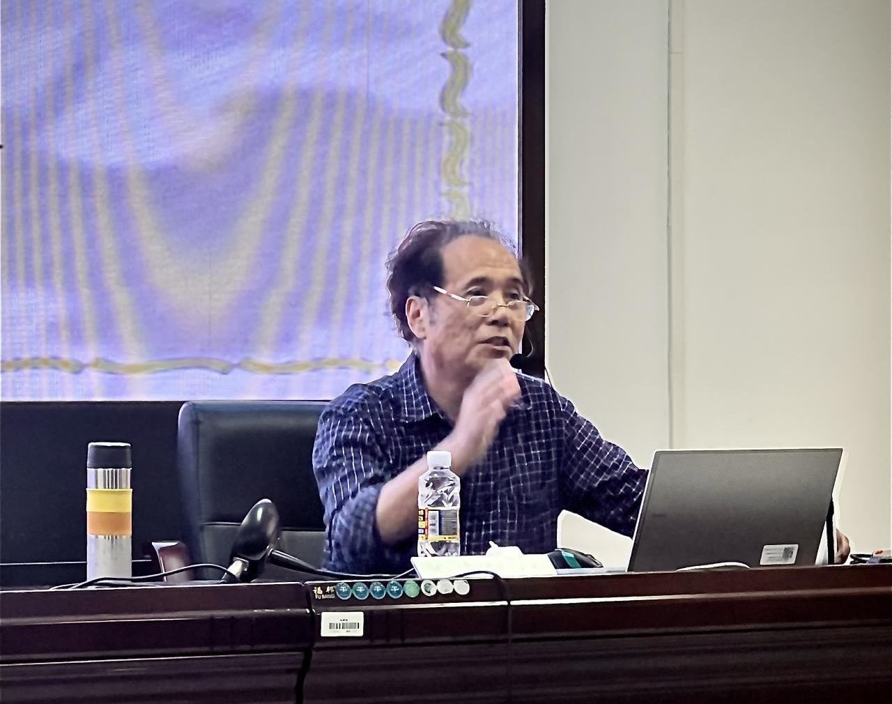 首先,主持人蒋老师隆重介绍了本次讲座主讲人林建群教授的工作履历及个人成就,随后讲座正式开始。林建群教授以牡丹江市马踏飞燕雕塑为引子向同学们介绍了公共艺术对建筑造型的重要性,并强调艺术可协助打破认知的边界。接着,林教授向同学们逐一讲述勒·柯布西耶、扎哈·哈迪德、王澍等几位当代著名建筑师与艺术家千丝万缕的联系,解读艺术对建筑师的成长的重要性,并向同学们介绍艺术的各种类型,同时列举大量实例以拓宽同学们的视野。之后,林教授通过让同学们画出海南岛、海口市的地标建筑,向同学们介绍了海南当地的非物质文化遗产——儋州调声,提醒海大学生要时刻关注当地的民俗风情文化,要以公共艺术视角看待地域性建筑。