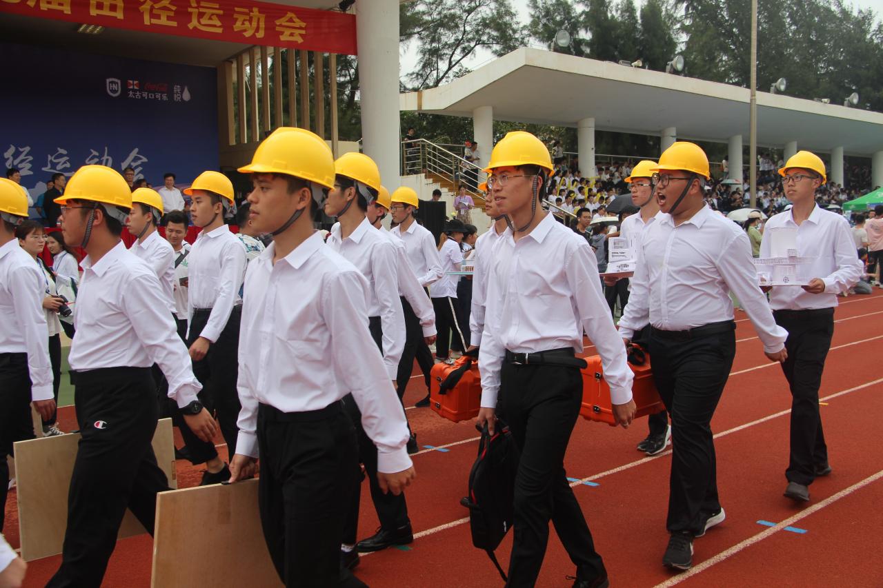 william威廉亚洲官方方阵的成员身着统一服装,头戴安全帽,手持测绘仪、模型、画板等物品,迈着整齐的步伐,带着昂扬的气势来到主席台前,他们个个精神饱满,朝气蓬勃,展现了土建人的精神风貌。