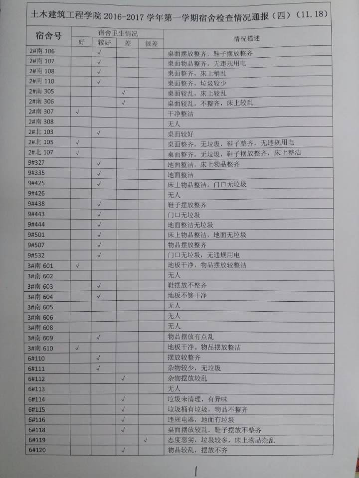 william威廉亚洲官方2016-2017学年第一学期宿舍检查情况通报(四)