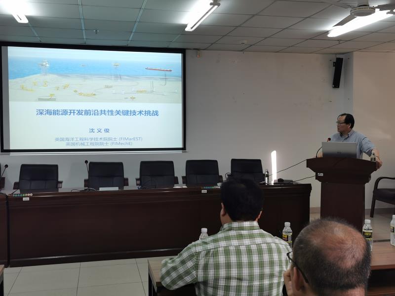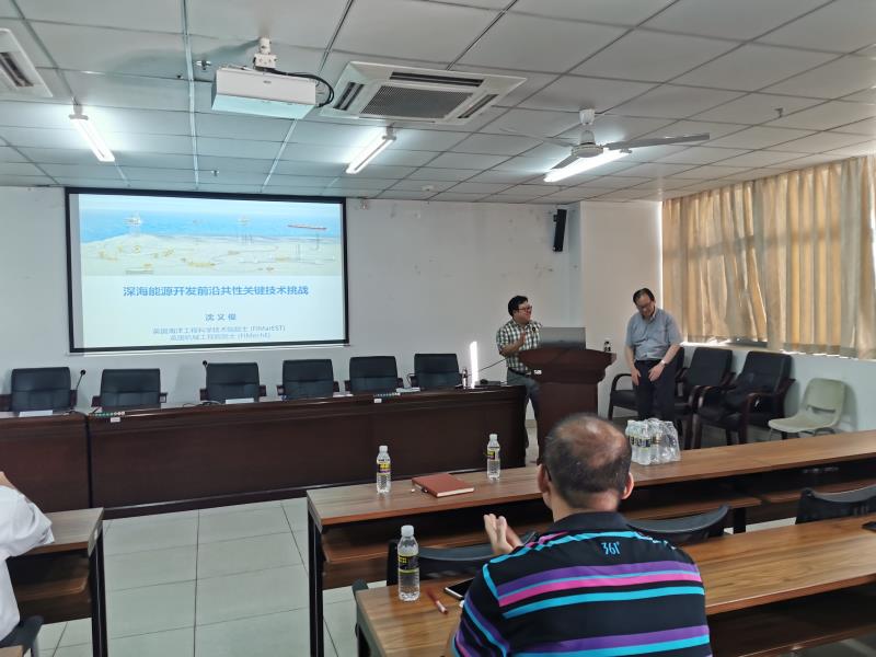 沈义俊教授结合他近十多年来在深海能源开发设计、研发及咨询经验,在深海油气开发技术、可燃冰开采技术、深海可再生能源技术,以及深海稀有金属核开采技术等领域做了深入介绍。报告会现场,我院师生踊跃与沈义俊教授交流互动,现场提问热烈。通过报告会,不但极大地提升了我院的学术氛围,而且使我院的研究生和海洋工程系的师生了解深海能源开发最前沿的热点技术。会后双方还探讨了合作领域和合作方式。