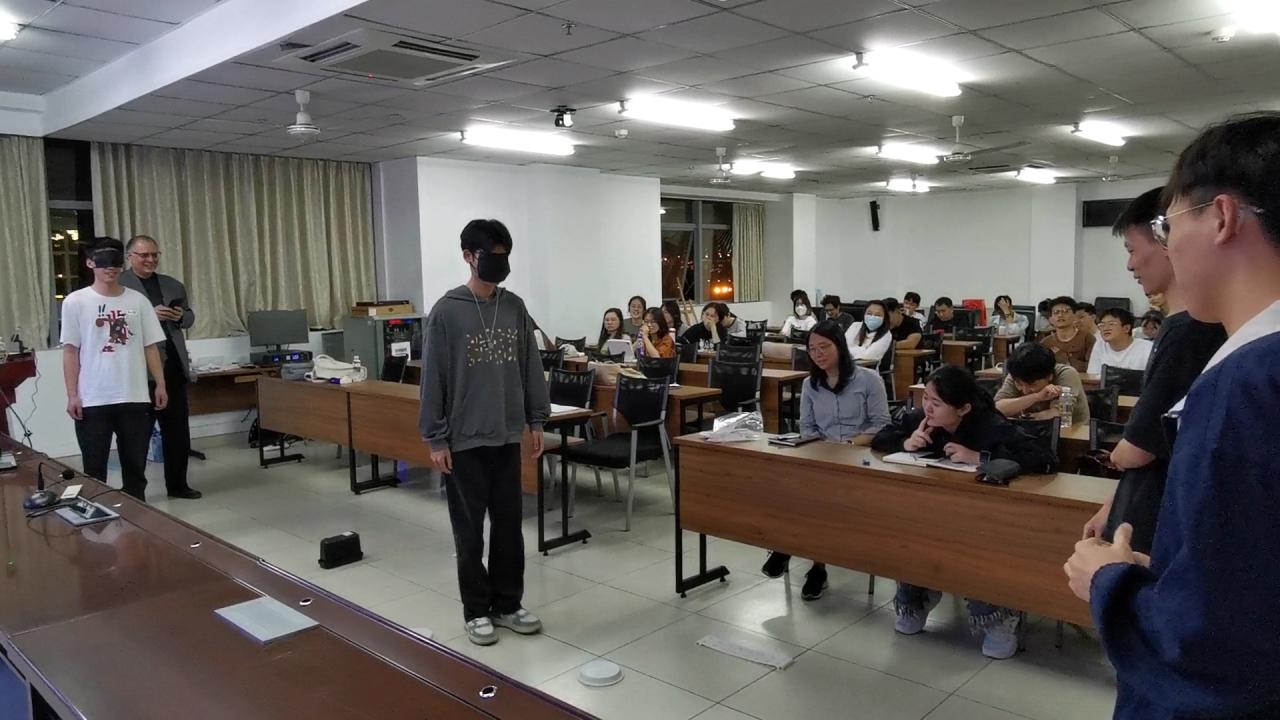 在介绍如何进行城市景观设计时,他邀请学生上台互动,通过做游戏的方式,轻松愉快地让学生了解到景观项目设计首先需要基于大量的信息,需要对自然环境等复杂的系统信息有全面掌握。