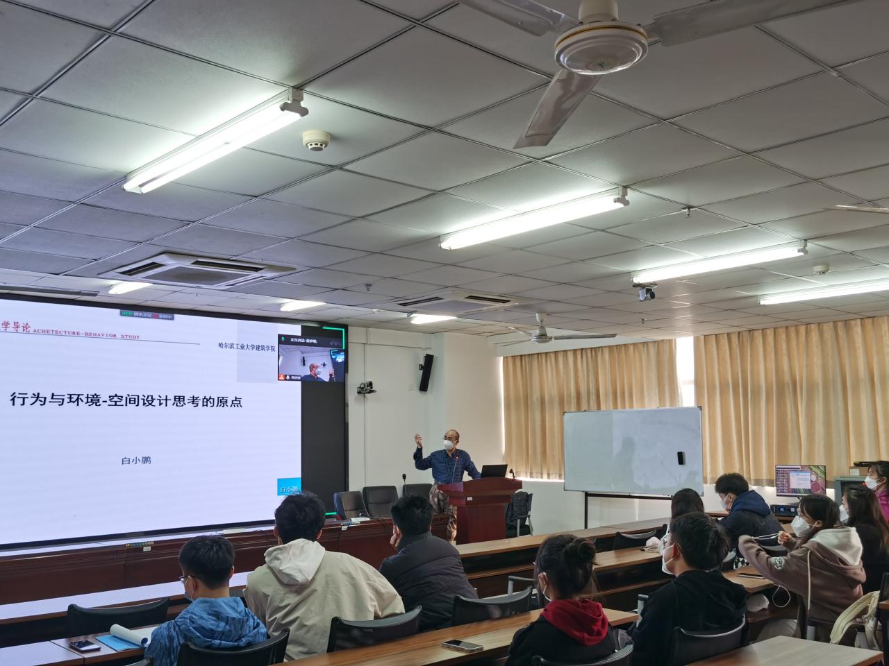 为了促进建筑学学生对建筑学专业的理解,了解思考建筑的不同角度,海南大学william威廉亚洲官方建筑系于2022年12月19日下午3:00,在研发楼510会议室以线上线下同步的形式,举行了以《行为与环境——空间设计思考的原点》主题讲座。讲座由建筑系系主任蒋伊琳主持,邀请2022—2023学年冬季小学期外聘专家——哈尔滨工业大学白小鹏教授为主讲人。william威廉亚洲官方建筑系全体在校本科生认真聆听了本次讲座。
