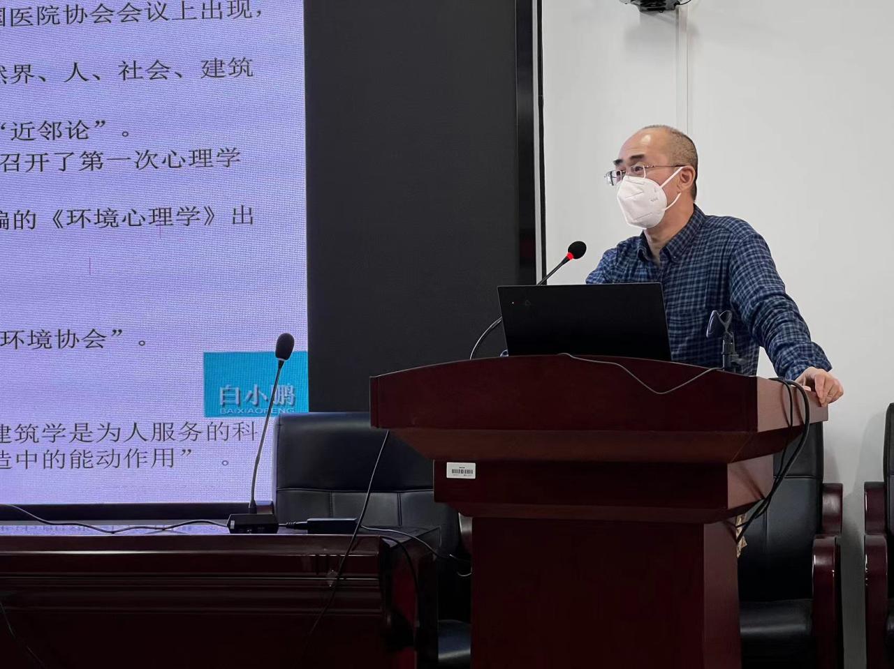在《行为与环境——空间设计思考的原点》主题讲座中,白小鹏教授以国内环境心理学的发展沿革为起点开始讲座,后说明行为是人们在环境中心理活动的显现,观察和理解人与人群的行为,分析解读行为与周围环境的关系,是进一步理解建筑空间功能的实用性和适用性的原点。