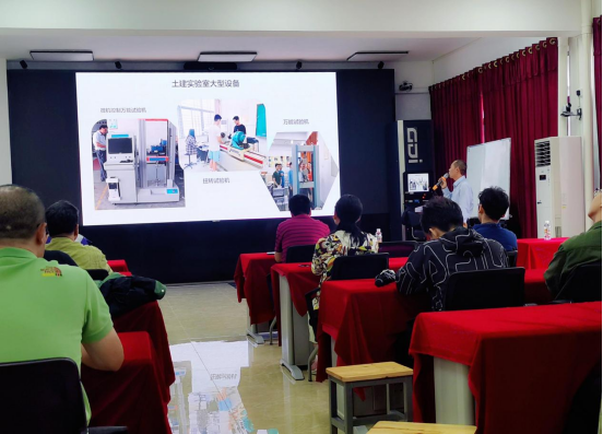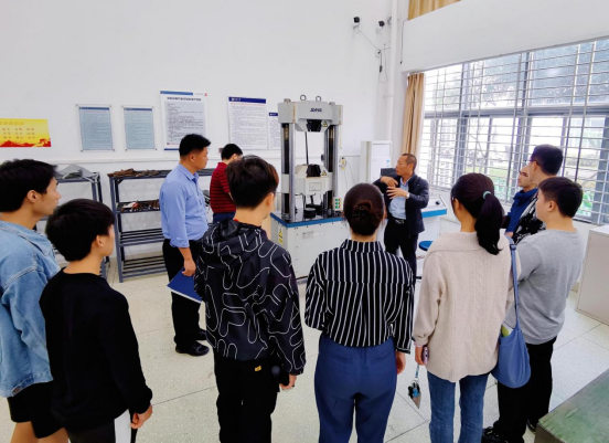 在掌握了基本的消防知识后,田元福院长和王智科长带领大家到一楼的万能试验机室,组织学生们针对土木实验室特有的大型操作器械进行操作安全讲解。