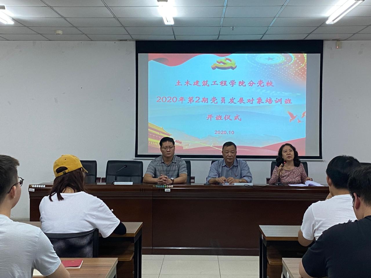 开班仪式结束后,学院党委书记卢江海以“听党话、跟党走,坚定共产主义理想信念,做新时代奋进有为青年”为主题为学员讲授了第一课。首先,卢书记通过我国抗击新冠肺炎疫情工作,指出指出我们党是以人民为中心的党,我党的宗旨是全心全意为人民服务,并且表扬了在疫情防控中表现突出的党员同志。之后,卢书记着眼海南自贸港建设,讲述了海南自贸港建设的意义、特色、目标以及海南自贸港建设范围等内容。第三部分,卢书记引用了习近平总书记在纪念中国人民志愿军抗美援朝出国作战70周年大会上的讲话语录,回顾了抗美援朝的历史,以毛岸英为例,讲述了抗美援朝中青年党员的宝贵精神。最后,卢书记引用了习近平总书记对于当代青年的四点希望即爱国、励志、求真、力行,作为对于党员发展对象以及入党积极分子的要求与期望。