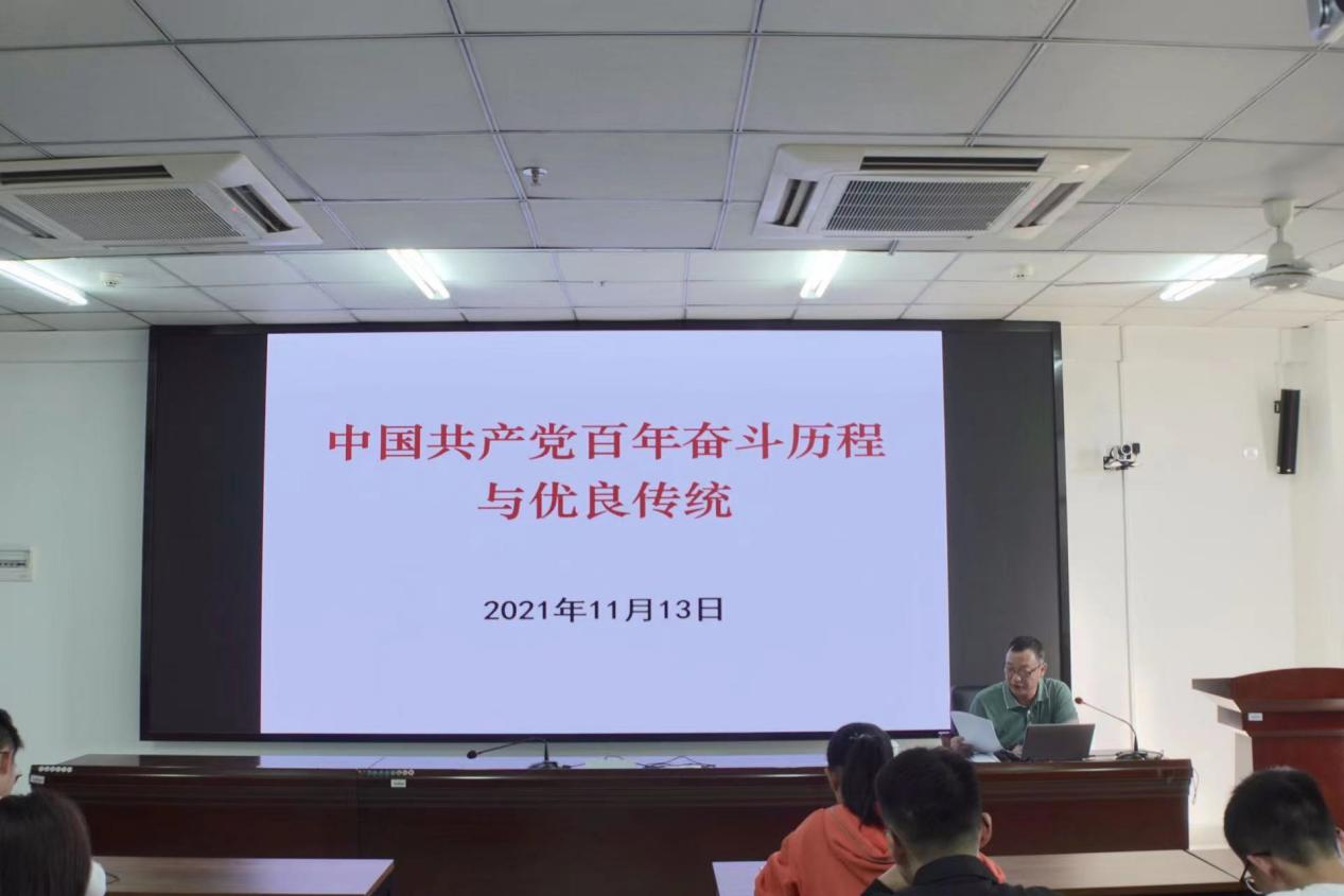 13日下午,党员发展对象培训班开班仪式由学院党委副书记孙晓媛主持。开班仪式结束后,学院党委书记卢江海以《中国共产党百年奋斗历程与优良传统》为主题为学员讲授第一课。卢书记指出,中国共产党走过了波澜壮阔的一百年,归结为一个主题就是“为中国人民谋幸福,为中华民族谋复兴的历程”,并通过中国共产党为何能取得全国政权、如何看待党对社会主义道路的探索、中国改革开放为何能成功、革命建设改革进程中形成哪些优良传统作风等四个问题,带领本期学员学习了建党以来我党在各个时期、各个方面取得的辉煌成就,令广大学员深刻领悟到中国共产党为什么能、中国特色社会主义为什么好。在此次党课的最后,卢书记引用庆祝中国共产党成立100周年大会上青年代表对党的献词,带领全体学员一同宣誓——“请党放心,强国有我”,引导青年学子凝心聚力跟党走,增强责任感和使命感。