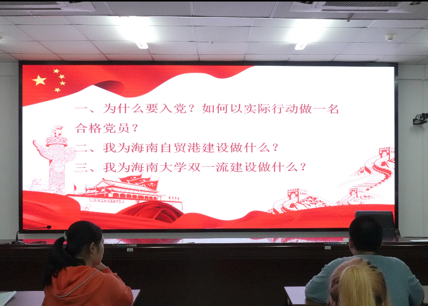 11月17日晚上,学院分党校组织党员发展对象以“为什么要入党?如何以实际行动做一名合格党员?我为海南自贸港建设做什么?我为海南大学‘双一流’建设做什么?”为主题开展讨论。正式党员参与讨论,引导党员发展对象树立正确的社会主义核心价值观,时刻铭记共产党的初心,做新时代的四有青年。