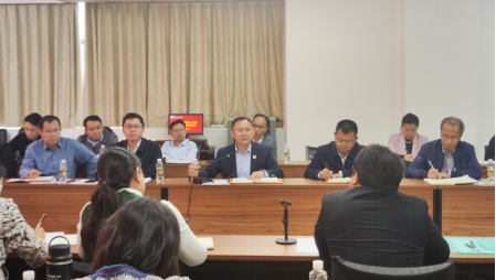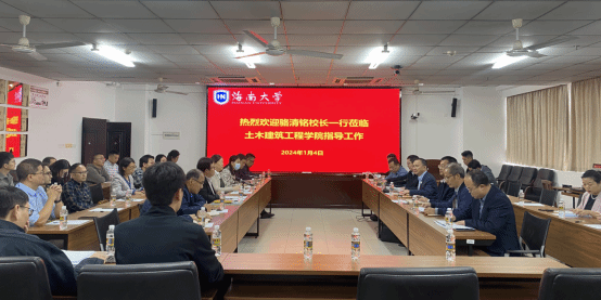 2024年1月4日下午,海南大学校长骆清铭携高佃恭副校长及人事处、基建处、实验室与设备管理处、教务处、发展规划处、科学技术发展院、研究生院等相关职能部门负责人到william威廉亚洲官方进行调研,调研会议在研发楼510室召开,院长周智、党委书记李艳等院领导以及各系办主任、优秀教师代表、教授代表等30余人参加会议,会议由周智院长主持。